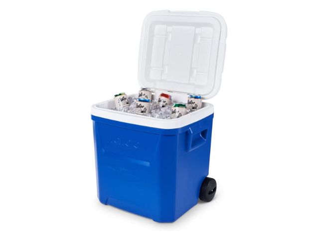 Esta es la nevera con ruedas Laguna Igloo de 56 Lts 60Qt y hasta 93 latas Azul. Chévere para los viajes es contar con el aislamiento limpio y ecológico gracias a la espuma THERMECOOL™ y así poder mantener tus bebidas o alimentos a la temperatura ideal hasta 3 días. Además, gracias a sus ruedas, te dará movilidad todo terreno.
